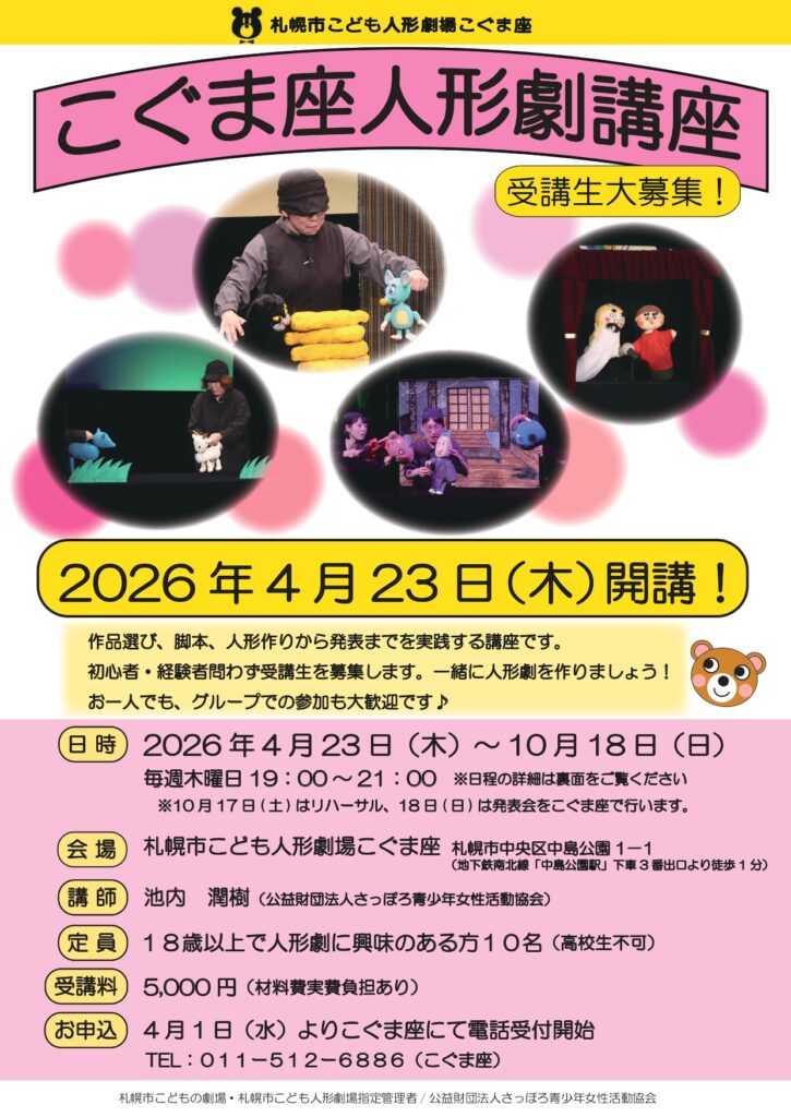 2026年4月23日(木)よりこぐま座で人形劇講座を開講いたします!