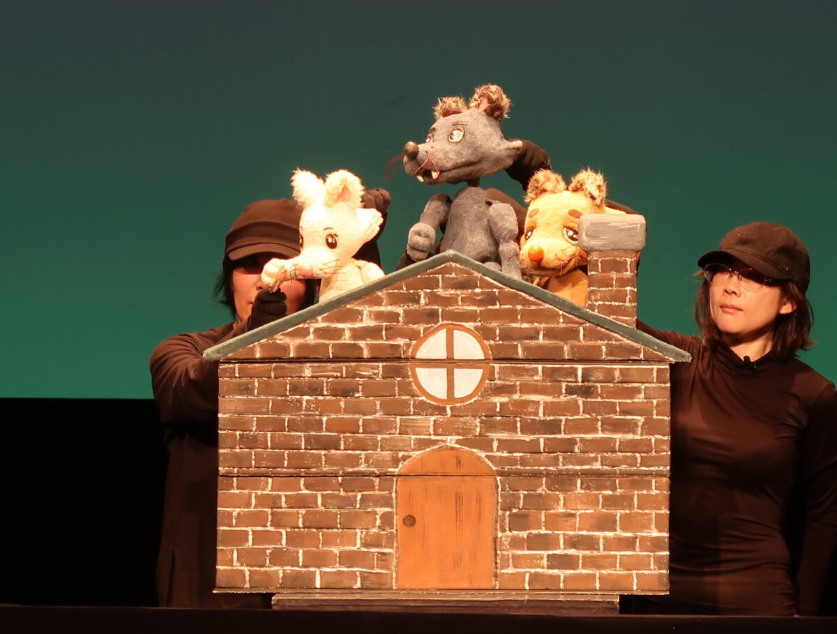 3びきのこぶた?いいえ、このお話に出てくるのは、3びきのオオカミなんです。素敵なお家を建てようと奮闘するおおかみ3兄弟の前に立ちはだかるのは…まさかの…⁉︎ほかにも人形劇やたくさんのお楽しみを用意してお待ちしています!